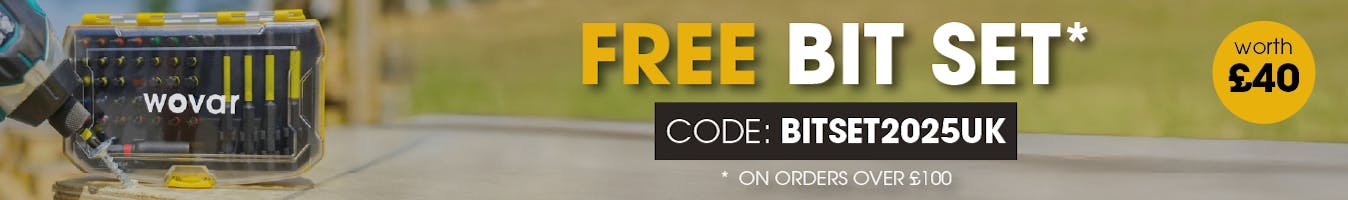 Receive a free 41-piece Impact Bit Set worth £40 with any order over £100 when you use the code BITSET2025UK.
